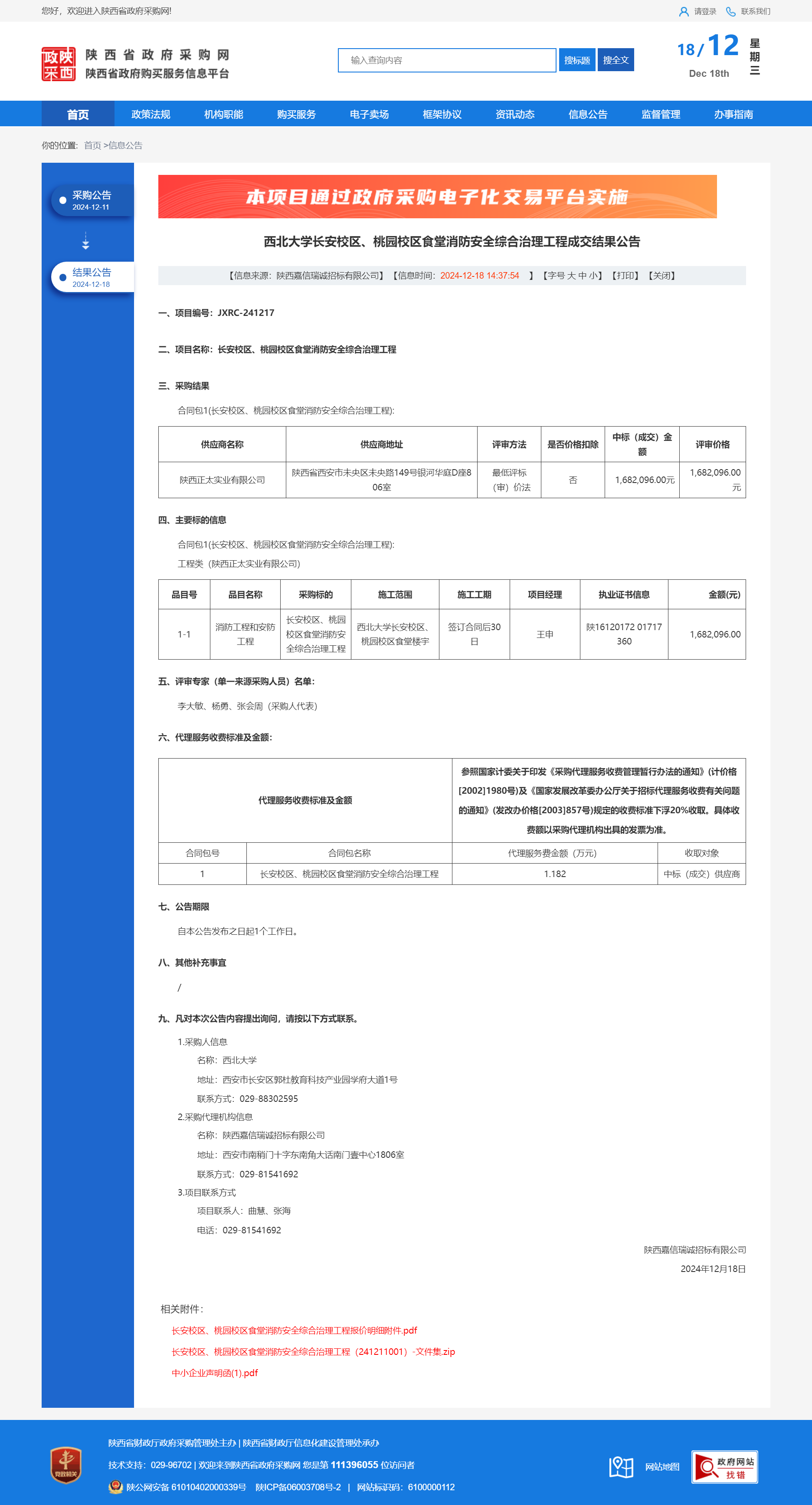 MILAN.COM长安校区、桃园校区食堂消防安全综合治理工程成交结果公告