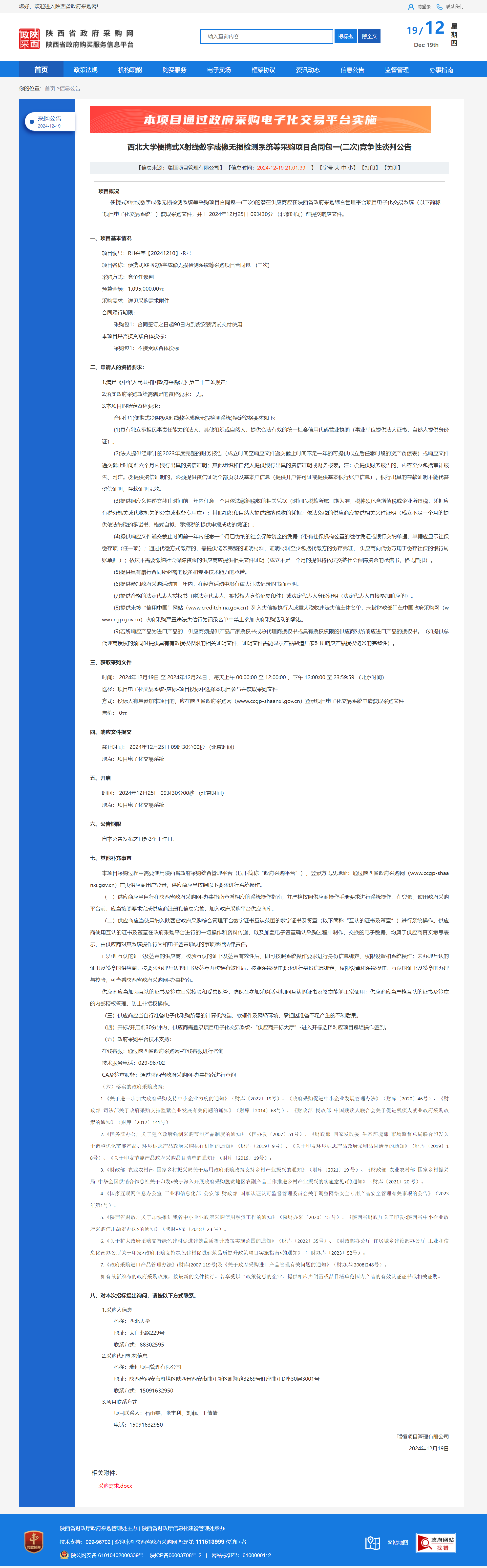 MILAN.COM便携式X射线数字成像无损检测系统等采购项目合同包一(二次)竞争性谈判公告