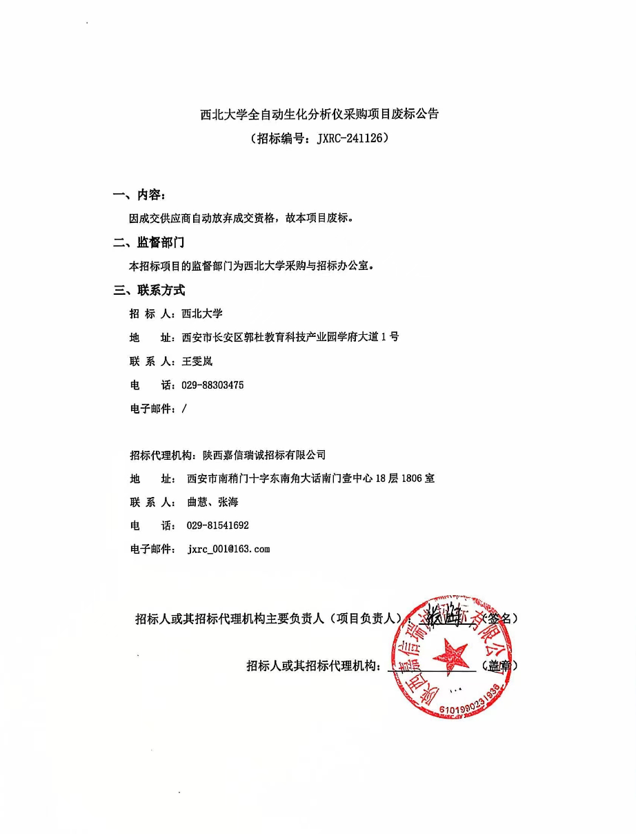 MILAN.COM全自动生化分析仪采购项目废标公告 作者:采购与招标办公室 编辑: 时间:2024-12-24 原公告链接:http://bulletin.sntba.com/changeBulletin/2024-12-24/2002236.html