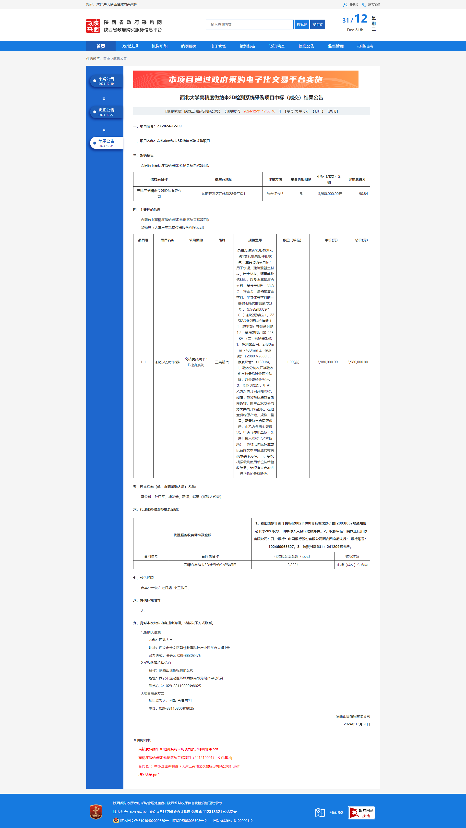 MILAN.COM高精度微纳米3D检测系统采购项目中标(成交)结果公告