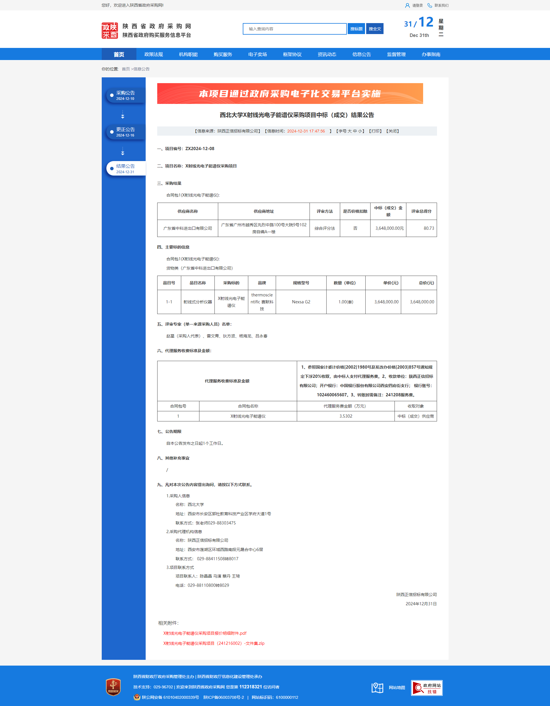 MILAN.COMX射线光电子能谱仪采购项目中标(成交)结果公告