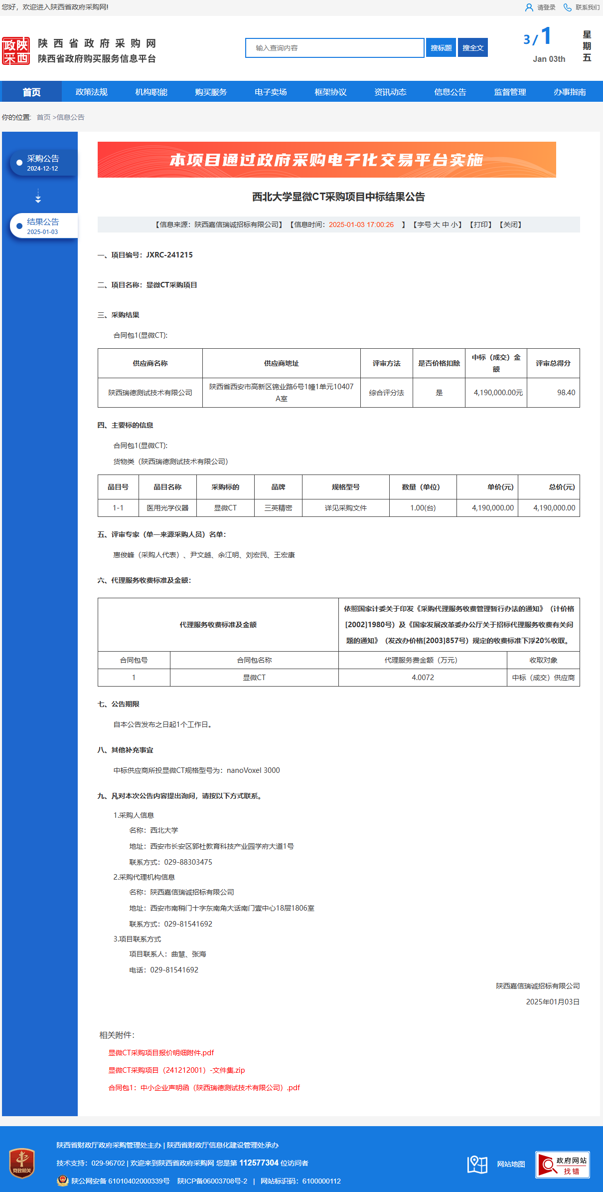 MILAN.COM显微CT采购项目中标结果公告 作者:采购与招标办公室 编辑: 时间:2025-01-03 原公告链接:https://www.ccgp-shaanxi.gov.cn/freecms/site/shaanxi/ggxx/info/2025/8a69c44e9218572b01942b1fbacb63ce.html?noticeType=001021¬iceId=d5b3fb7e-c9b2-11ef-8063-08c0eb20c666