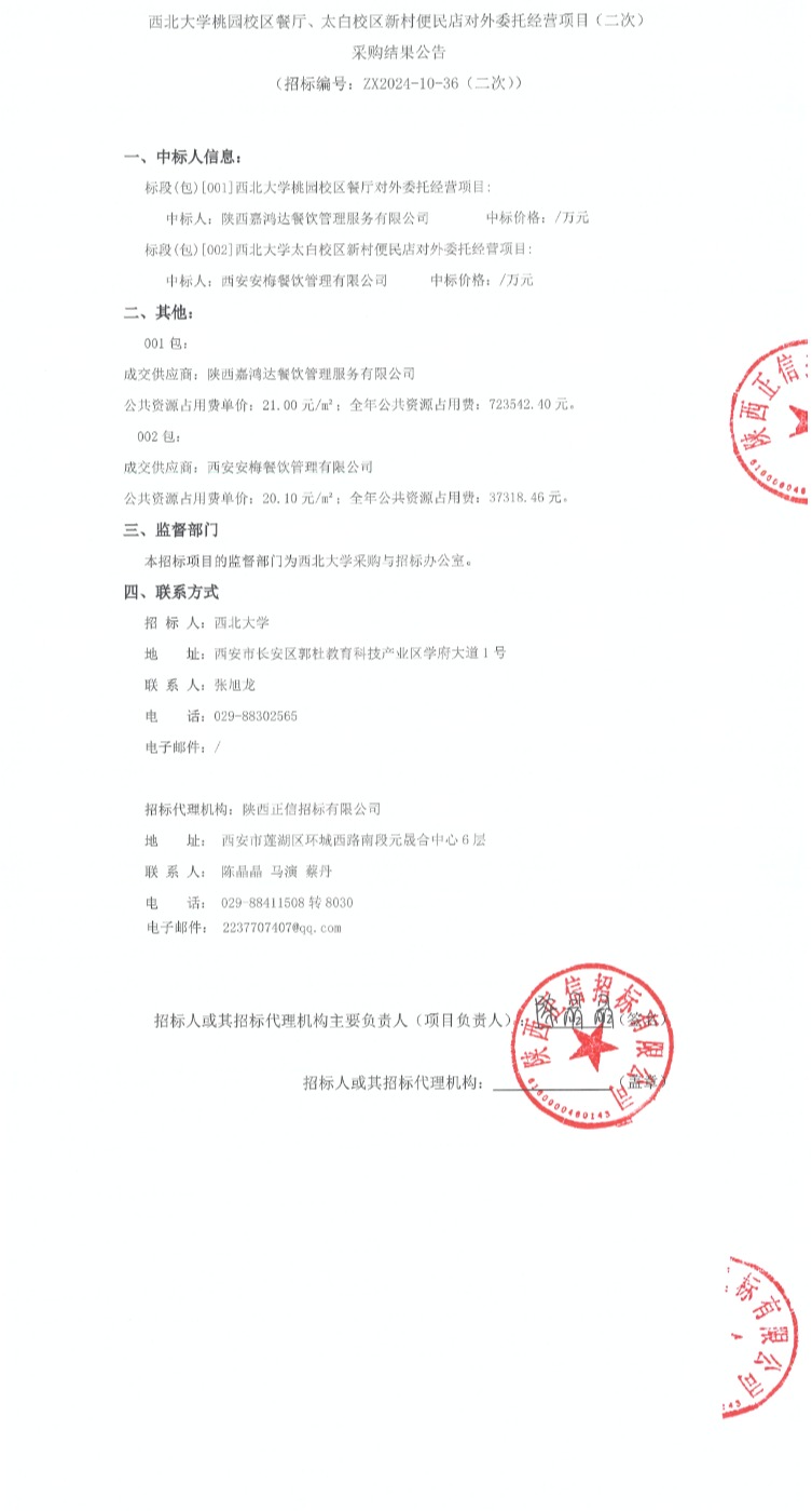 MILAN.COM桃园校区餐厅、太白校区新村便民店对外委托经营项目(二次)采购结果公告