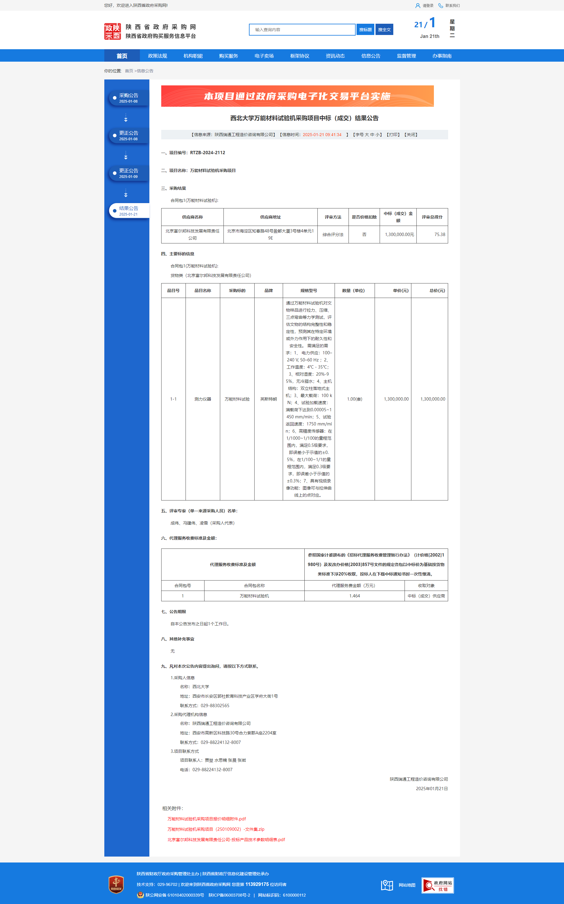 MILAN.COM万能材料试验机采购项目中标(成交)结果公告