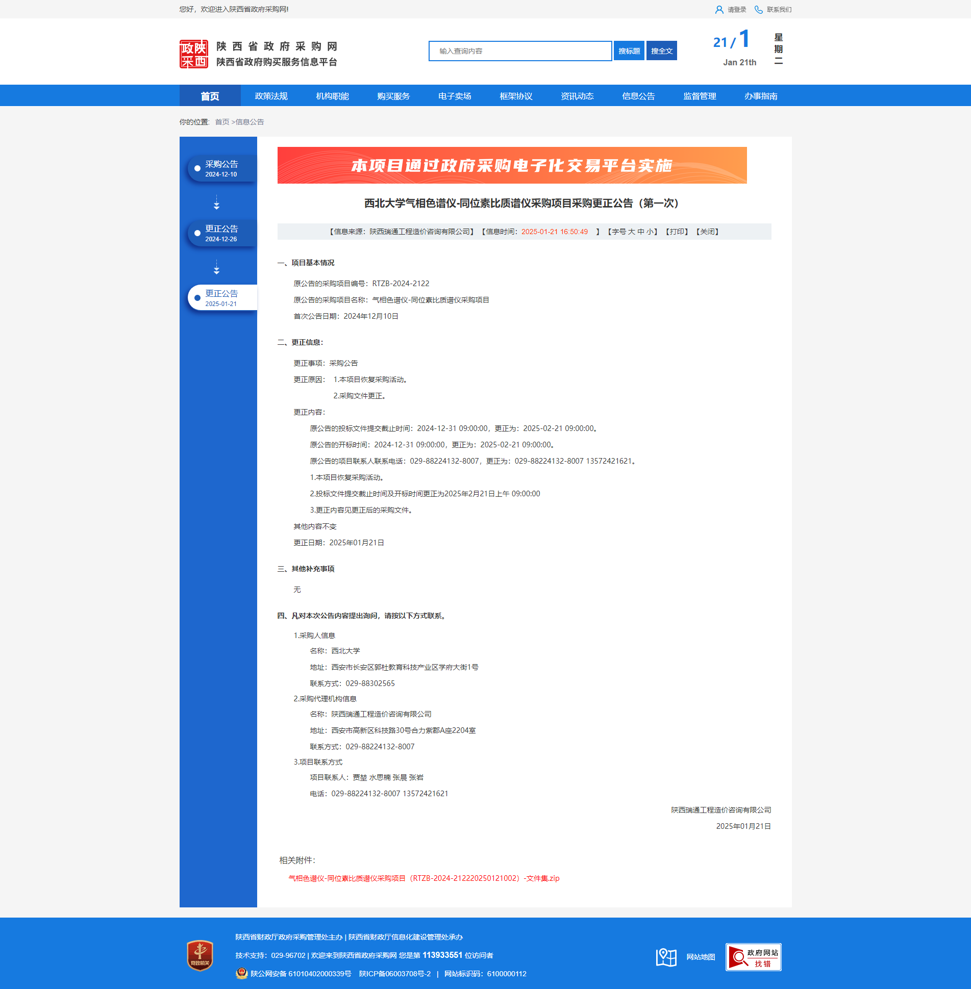 MILAN.COM气相色谱仪-同位素比质谱仪采购项目采购更正公告(第一次)