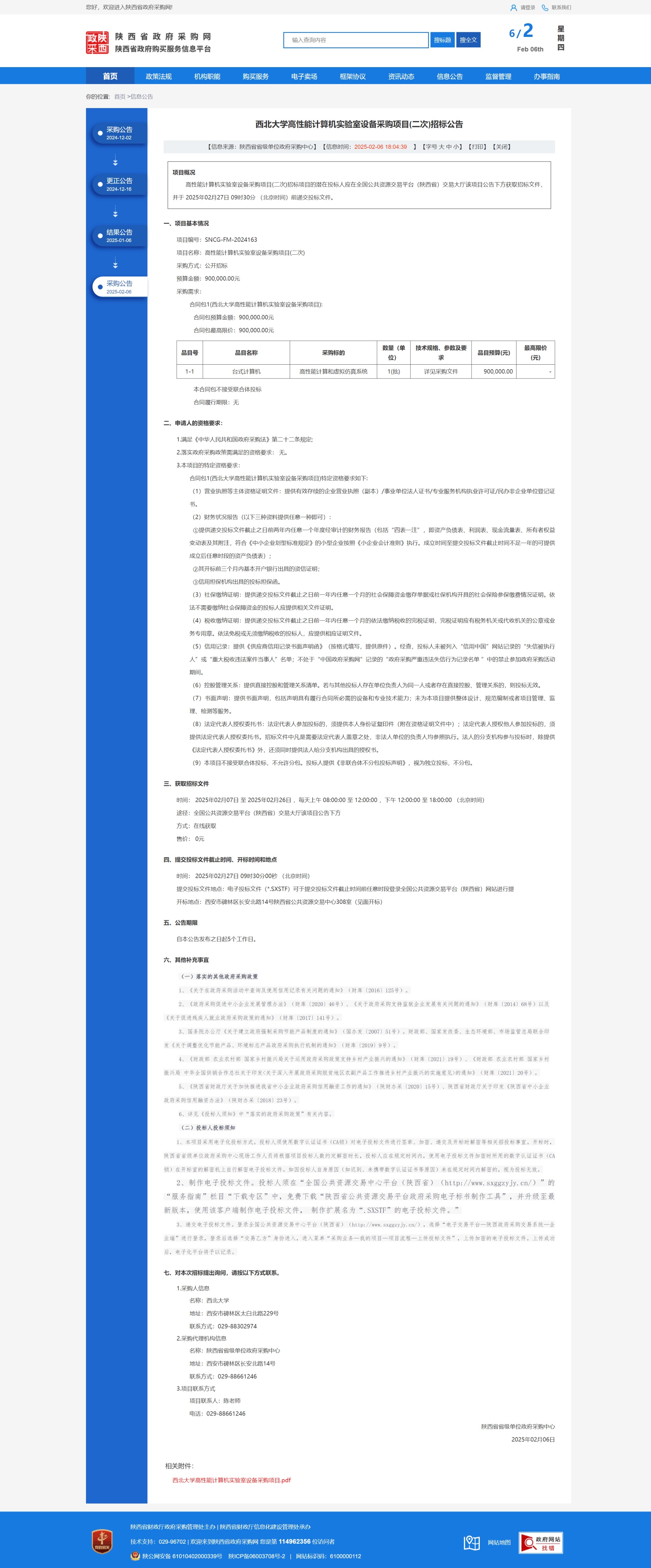 MILAN.COM高性能计算机实验室设备采购项目(二次)招标公告 作者: 编辑:薛利娟 时间:2025-02-06 原公告链接:https://www.ccgp-shaanxi.gov.cn/freecms/site/shaanxi/ggxx/info/2025/8a69c97494792d530194d955079d37f3.html?noticeType=001011¬iceId=813dda34-e473-11ef-8063-08c0eb20c666