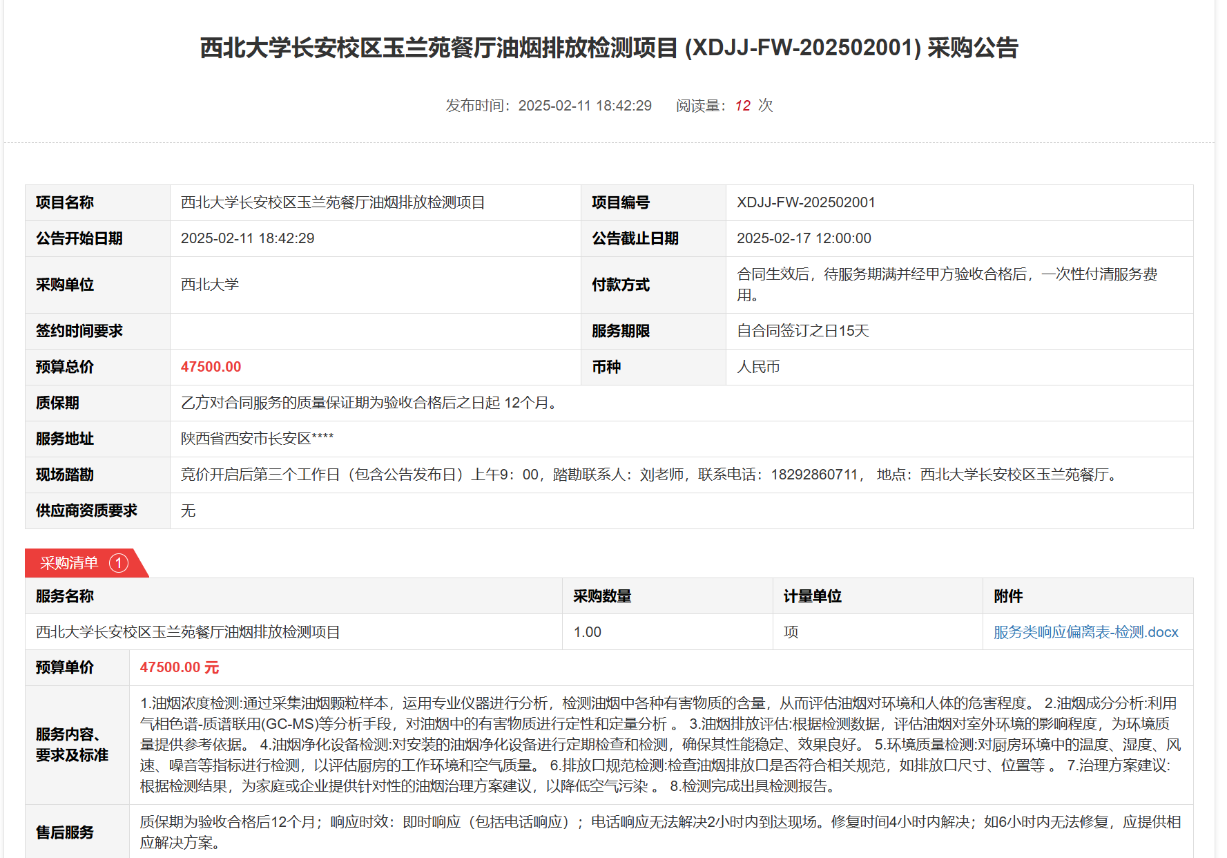 MILAN.COM长安校区玉兰苑餐厅油烟排放检测项目(XDJJ-FW-202502001)竞价采购公告 作者:采购与招标办公室 编辑: 时间:2025-02-11 原公告链接:https://www.ejingcai.com.cn/site/bidding/detail/16498
