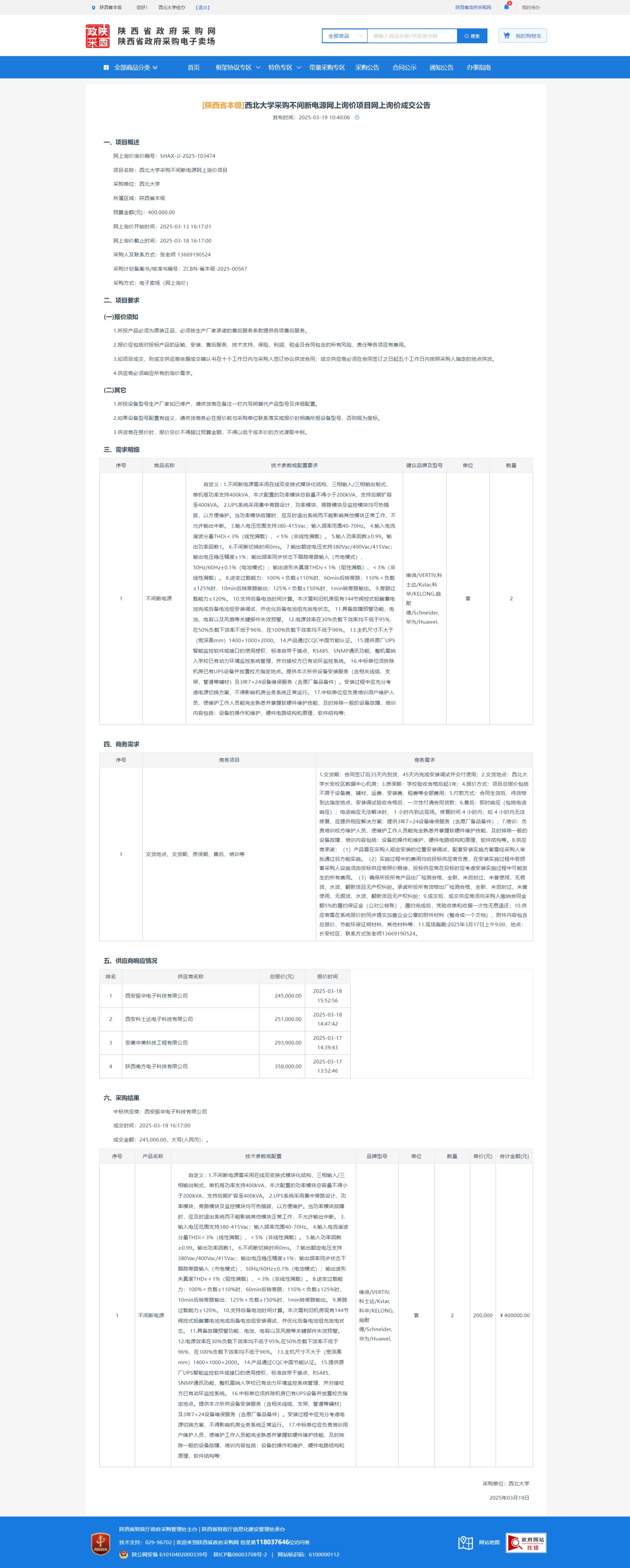 MILAN.COM采购不间断电源网上询价项目网上询价成交公告 作者: 编辑:采购与招标办公室 时间:2025-03-19 原公告链接:https://www.ccgp-shaanxi.gov.cn/gpmall-main-web/basic/noticeDetail?noticeGuid=7301336059869331456
