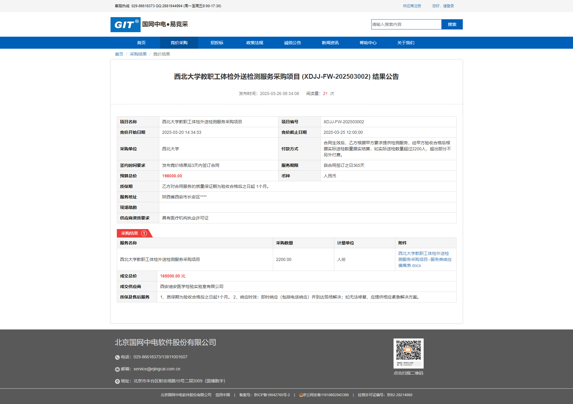 MILAN.COM教职工体检外送检测服务采购项目 (XDJJ-FW-202503002) 结果公告