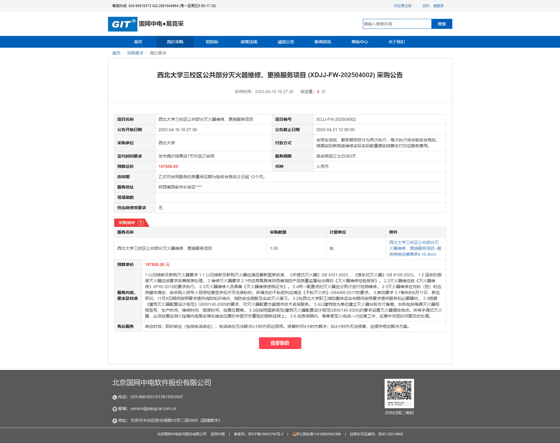 MILAN.COM三校区公共部分灭火器维修、更换服务项目 (XDJJ-FW-202504002) 采购公告