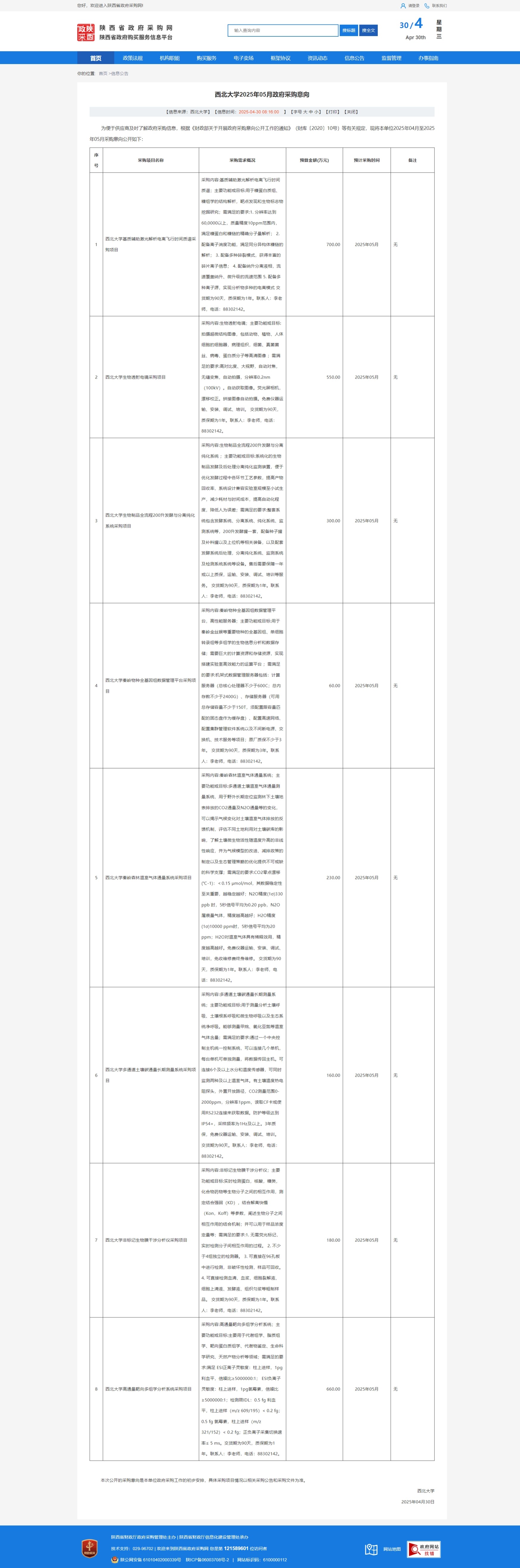 MILAN.COM2025年05月政府采购意向(生命科学学院) 作者: 编辑:采购与招标办公室 时间:2025-04-30 原公告链接:https://www.ccgp-shaanxi.gov.cn/freecms/site/shaanxi/ggxx/info/2025/8a69c1879656b6c301967b16d4213330.html?noticeType=59¬iceId=2c5b777a-255a-11f0-8063-08c0eb20c666