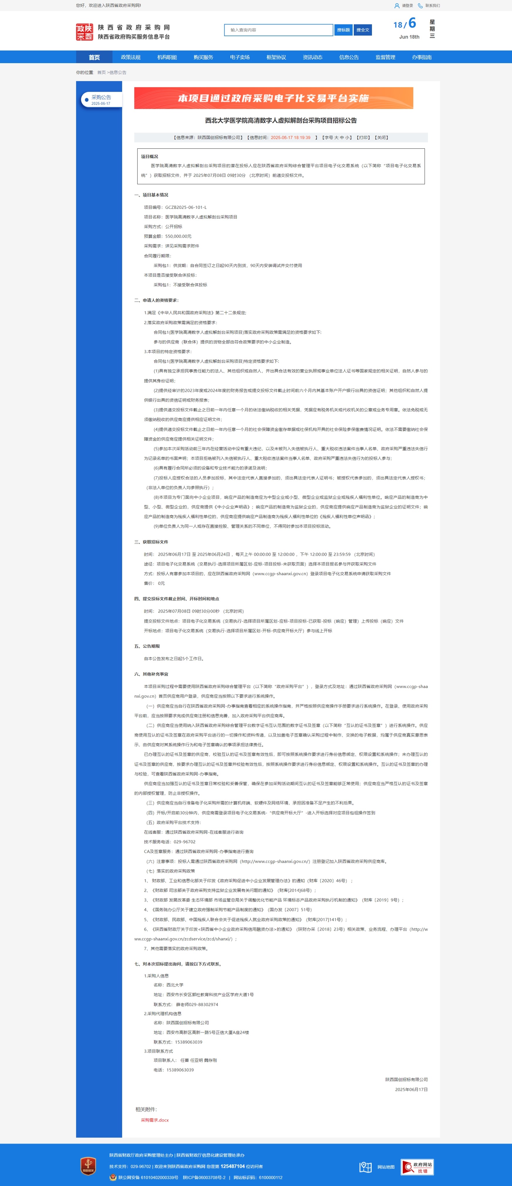 MILAN.COM医学院高清数字人虚拟解剖台采购项目招标公告 作者: 编辑:采购与招标办公室 时间:2025-06-18 原公告链接:https://www.ccgp-shaanxi.gov.cn/freecms/site/shaanxi/ggxx/info/2025/8a69c0a29672060001977d5b25b77c33.html?noticeType=001011¬iceId=8a96e29e-4b66-11f0-8063-08c0eb20c666