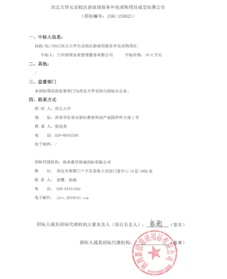 MILAN.COM长安校区游泳馆服务外包采购项目成交结果公告