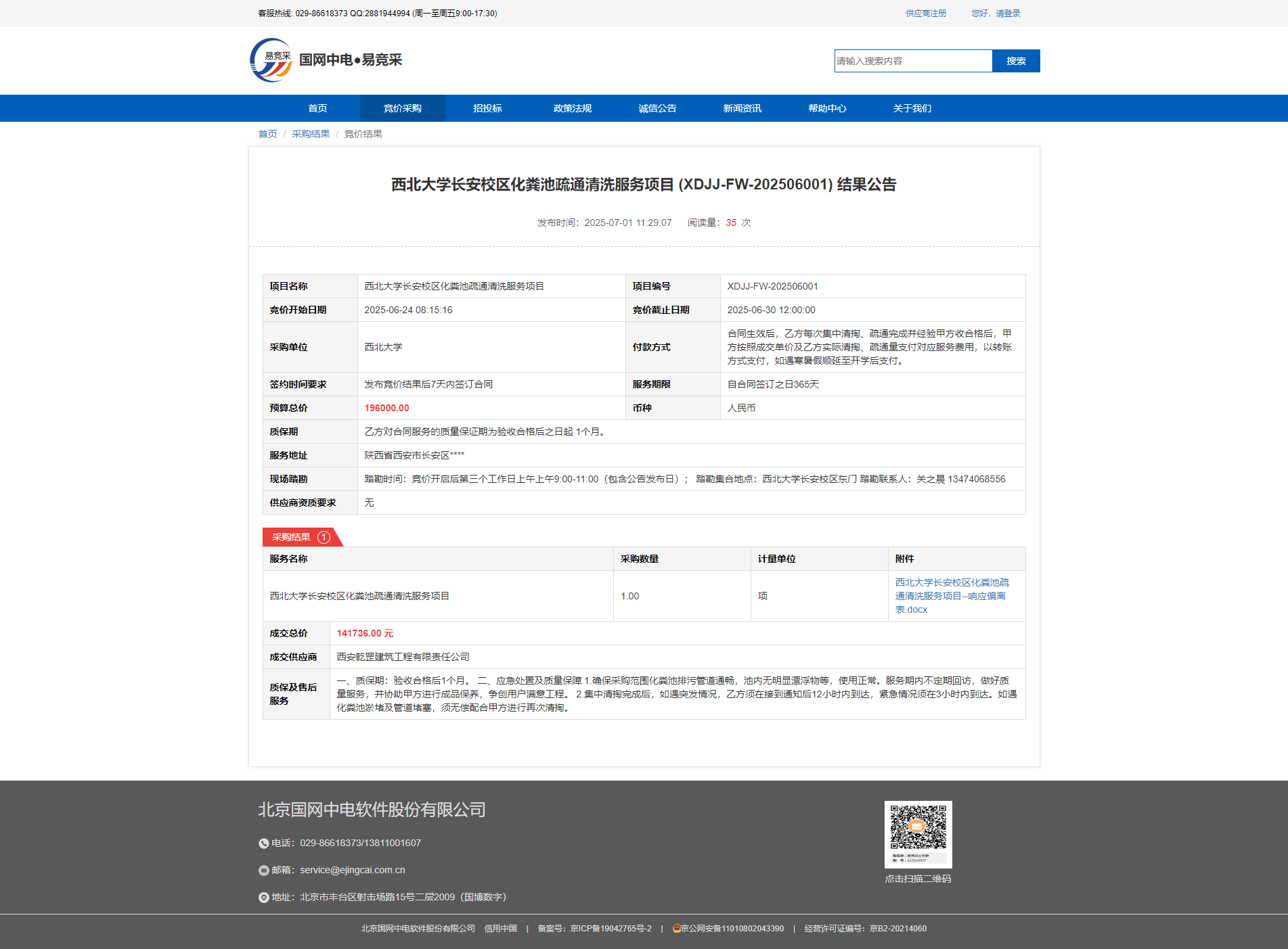 MILAN.COM长安校区化粪池疏通清洗服务项目 (XDJJ-FW-202506001) 结果公告
