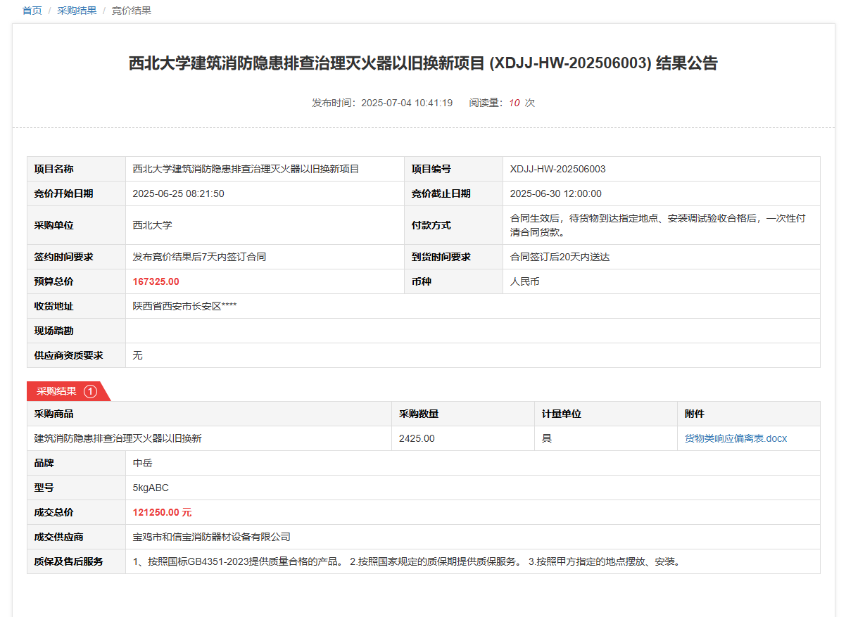 MILAN.COM太白校区11#、12#学生公寓室外部分消防安全综合治理工程 (XDJJ-GC-202506005) 结果公告