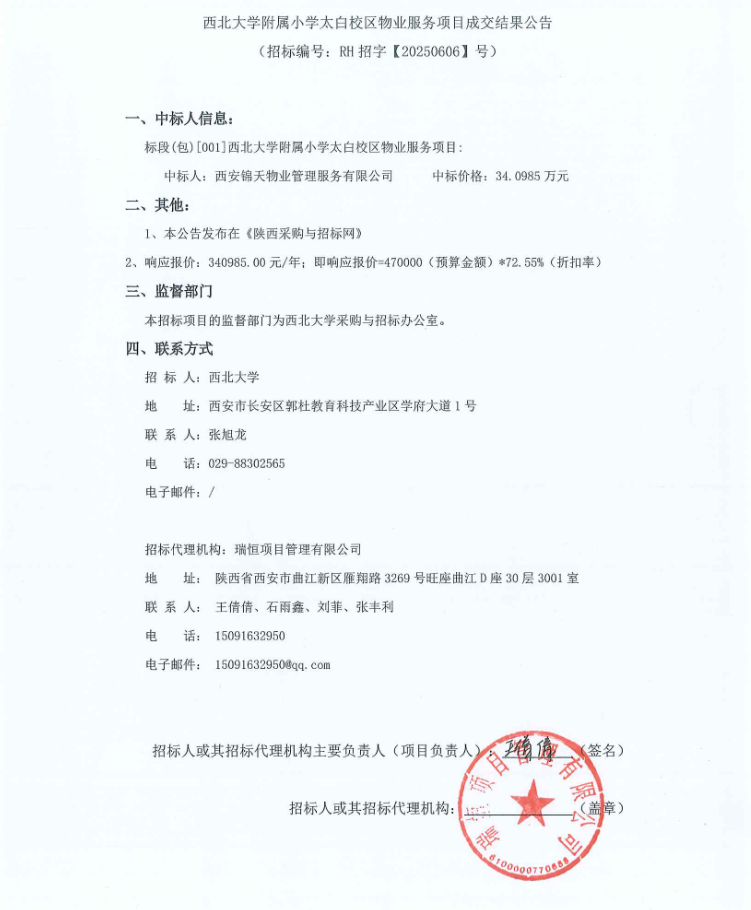 MILAN.COM附属小学太白校区物业服务项目成交结果公告