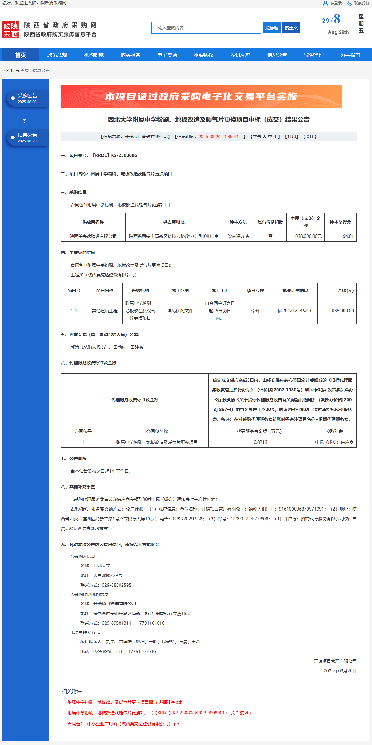 MILAN.COM附属中学粉刷、地板改造及暖气片更换项目中标(成交)结果公告