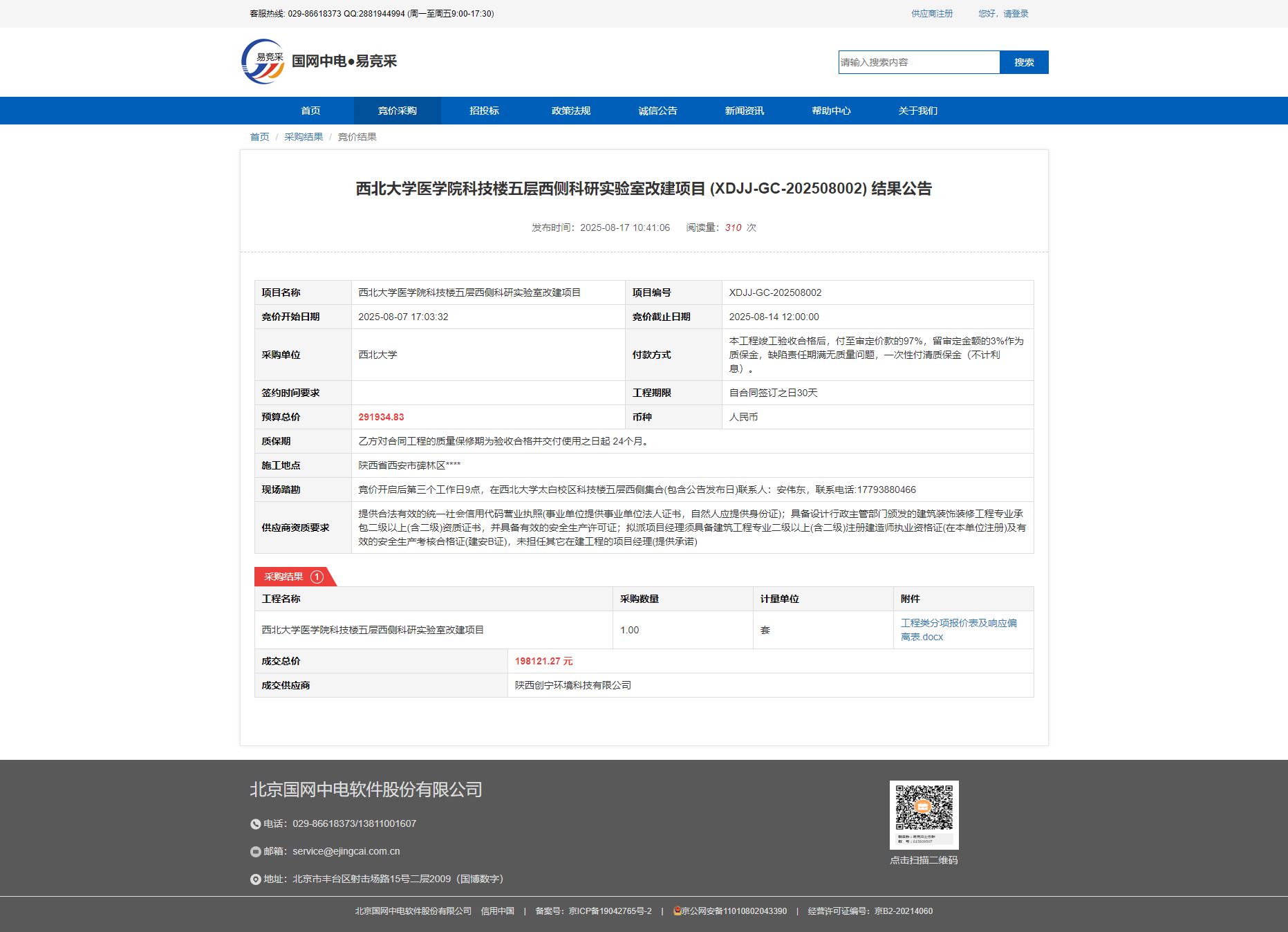 MILAN.COM太白校区科研楼公共区域、教学七号楼室内照明设施更换(XDJJ-GC-202508001)竞价结果公告