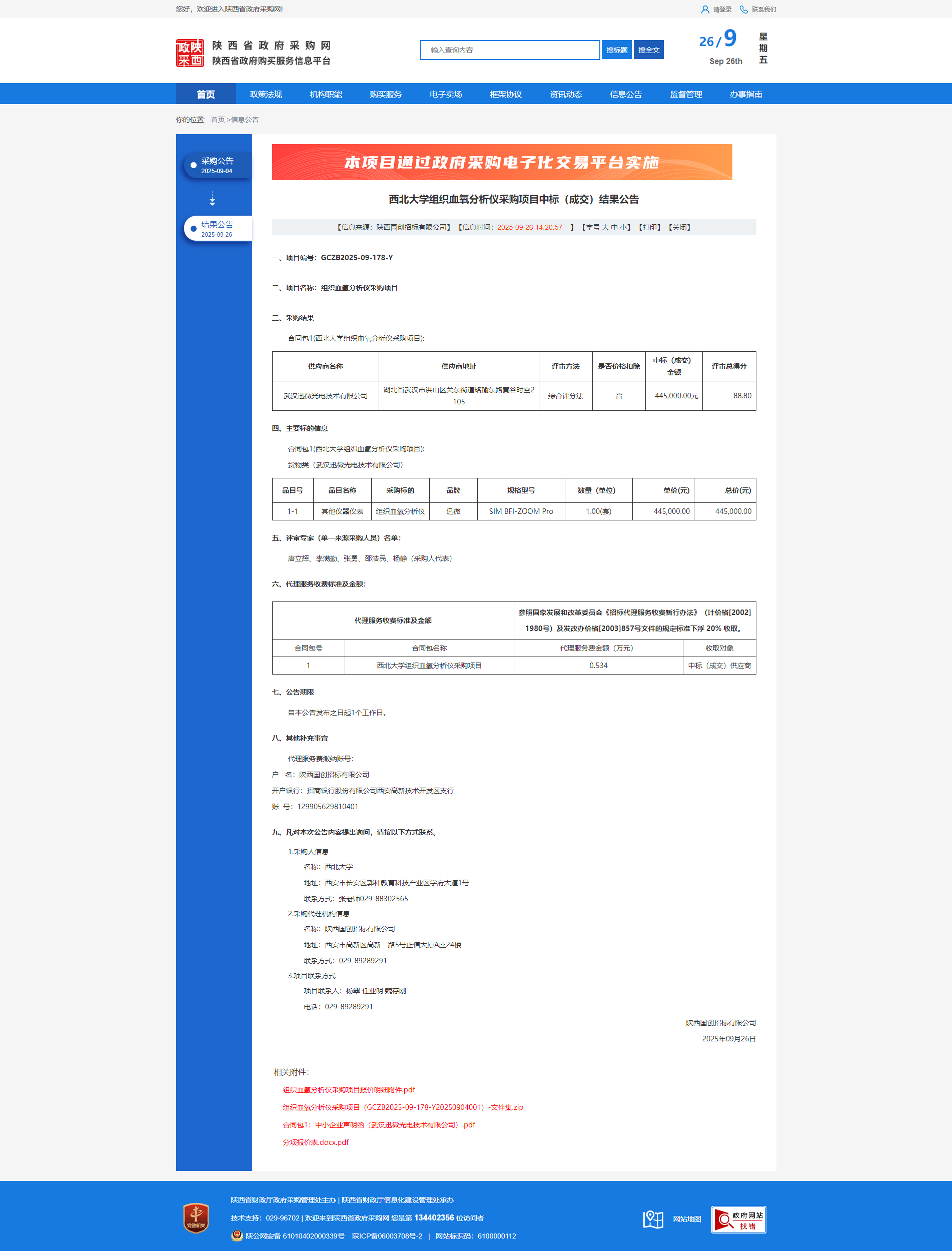 MILAN.COM组织血氧分析仪采购项目中标(成交)结果公告