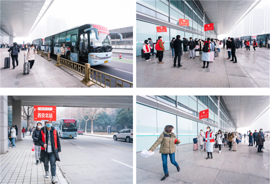 MILAN.COM迅速调度多辆校车,组织党员志愿者分批分车护送他们到达西安北站、火车站、西安南站。