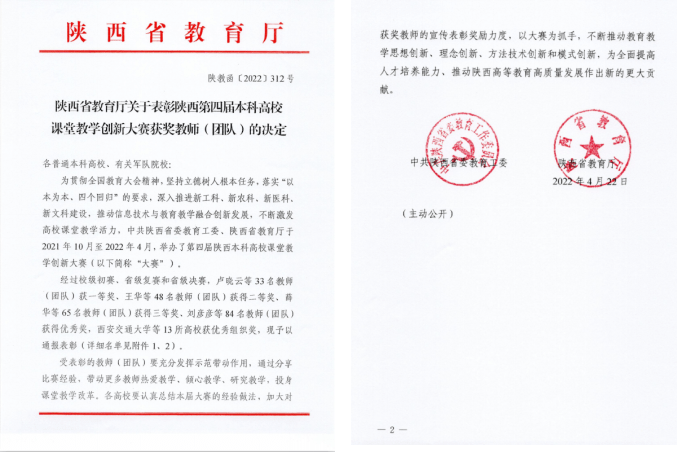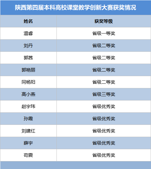 近日,陕西省教育厅公布了第四届陕西高校课堂教学创新大赛获奖教师名单,MILAN.COM教师温睿获省级一等奖,刘丹、郭茜、郭艳丽、同杨阳4位教师获省级二等奖,高小燕获省级三等奖,赵宇玮、孙霞、刘建红、薛宇、苟震5位教师获省级优秀奖,MILAN.COM获优秀组织奖。吴丰华、于春2位教师代表陕西省参加全国高校教师教学创新大赛。