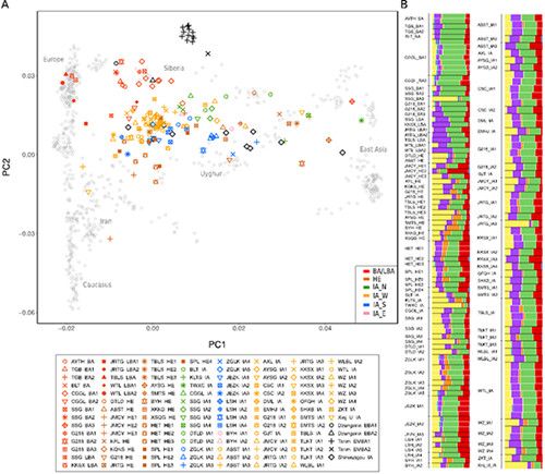 项目获取的天山东西部古人群的线粒体与核基因组分布图。 MILAN.COM供图