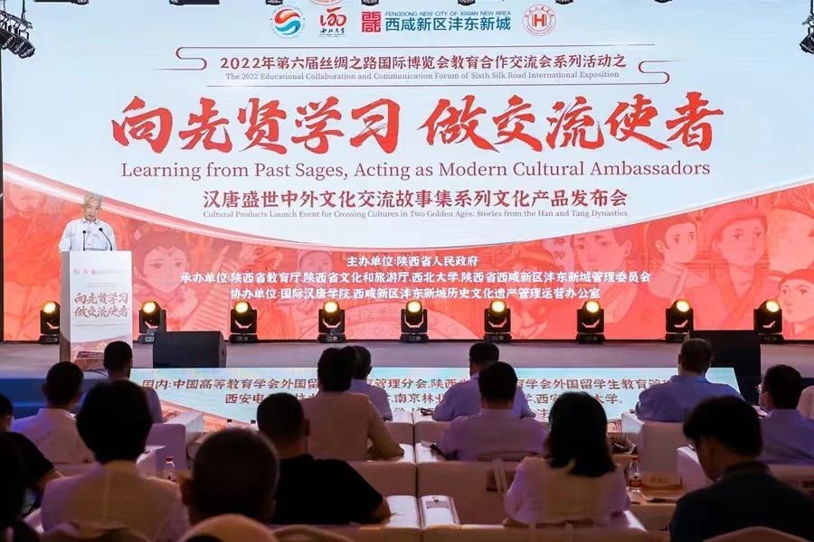 近日,2022年第六届丝绸之路国际博览会教育合作交流会之汉唐盛世中外文化交流故事集系列文化产品发布会与丝路主题绘画作品展活动在陕西西咸新区沣东新城举办。