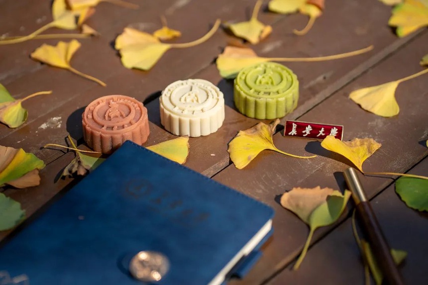 清风拂渭水,明月满长安;花好月圆日,中秋喜相逢!志士弘毅路修远,贤才明德天地长。长安大学的定制月饼上印着的校徽由篆字“长大”和西安城墙变形演化而成。篆字“长大”代表一把打开知识和智慧大门的钥匙。城墙图案表示“长安大学”所在西安市的地理位置。三个城门洞表示由原三所院校合并组建而成。校徽整体形象体现了学校“传播科学知识 启迪创新思维”的办学宗旨,并且体现出长安大学70余年来办学的悠久性、历史性。长安大学借由月饼祝大家合家团圆,中秋快乐!