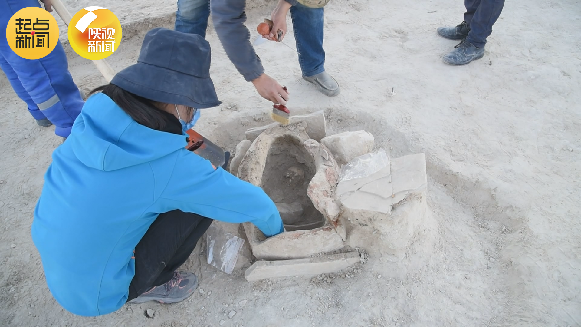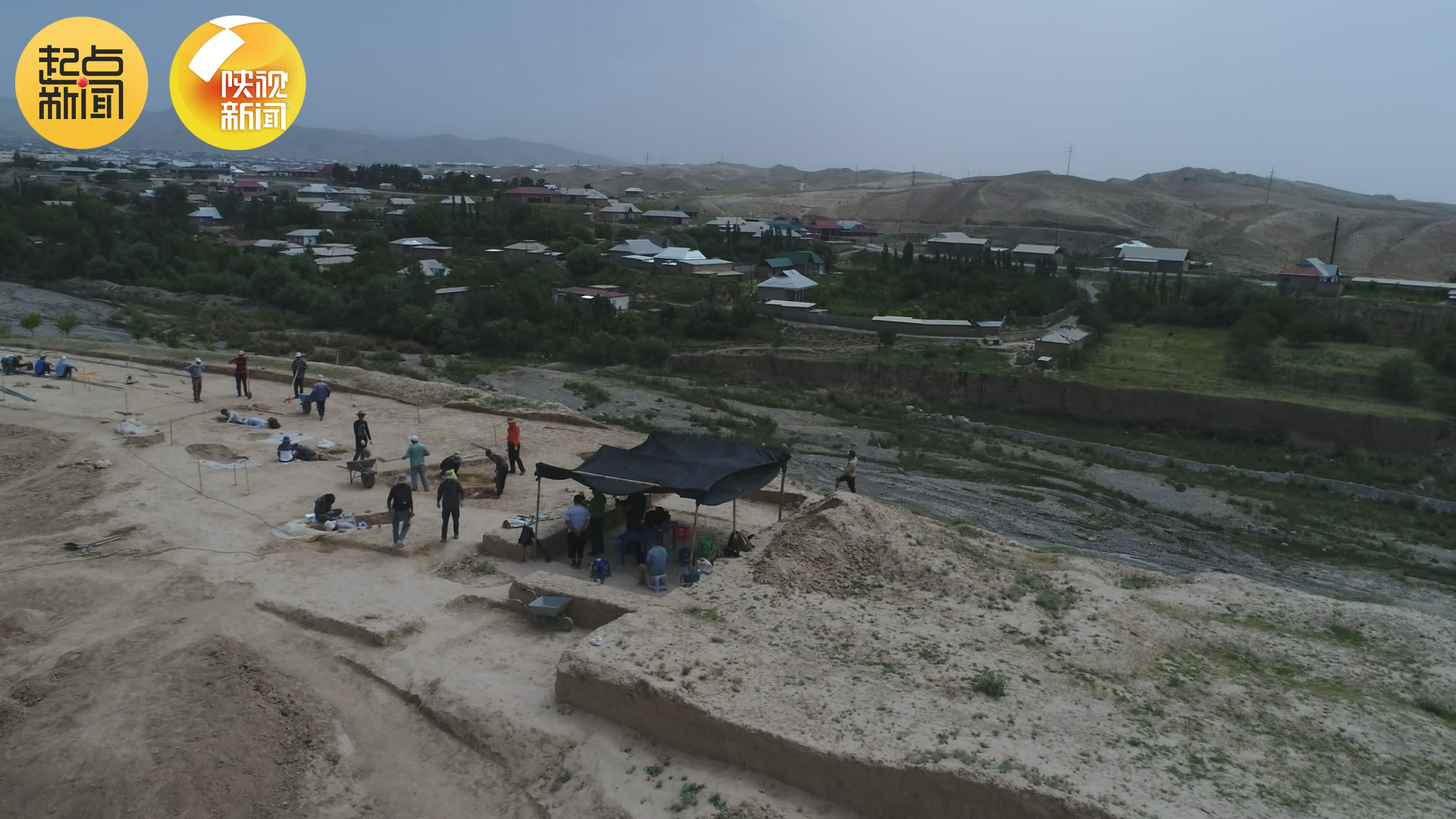 在库瓦古城遗址考古现场,乌兹别克斯坦共和国科学院考古所教授伊万诺夫.杰纳迪向王建新介绍这里的挖掘历史,“1939年,从塔什干来的一些考古专家调查发掘,公元一世纪已经盖了城墙了。”王建新很关心古城考古的具体情况:“已经有城墙了。现在我听到最早的有公元一世纪,还有更早的么?”杰纳迪教授表示古城城墙里面发现的陶瓷属于公元前六世纪。