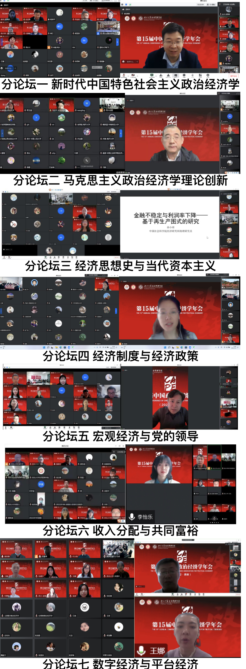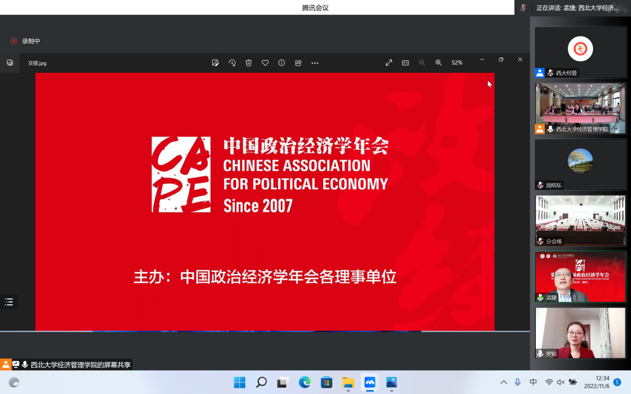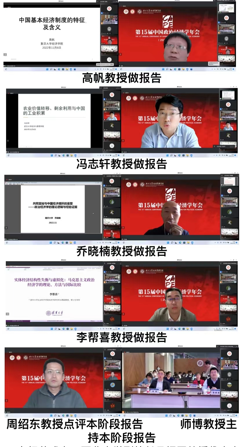 11月5日下午,年会“新时代中国特色社会主义政治经济学”“马克思主义政治经济学理论创新”“经济思想史与当代资本主义”“经济制度与经济政策”“宏观经济与党的领导”“收入分配与共同富裕”“数字经济与平台经济”七个分论坛同步举行,62位入选论文作者就相应主题进行了汇报,与会嘉宾充分交流讨论,取得了良好效果。