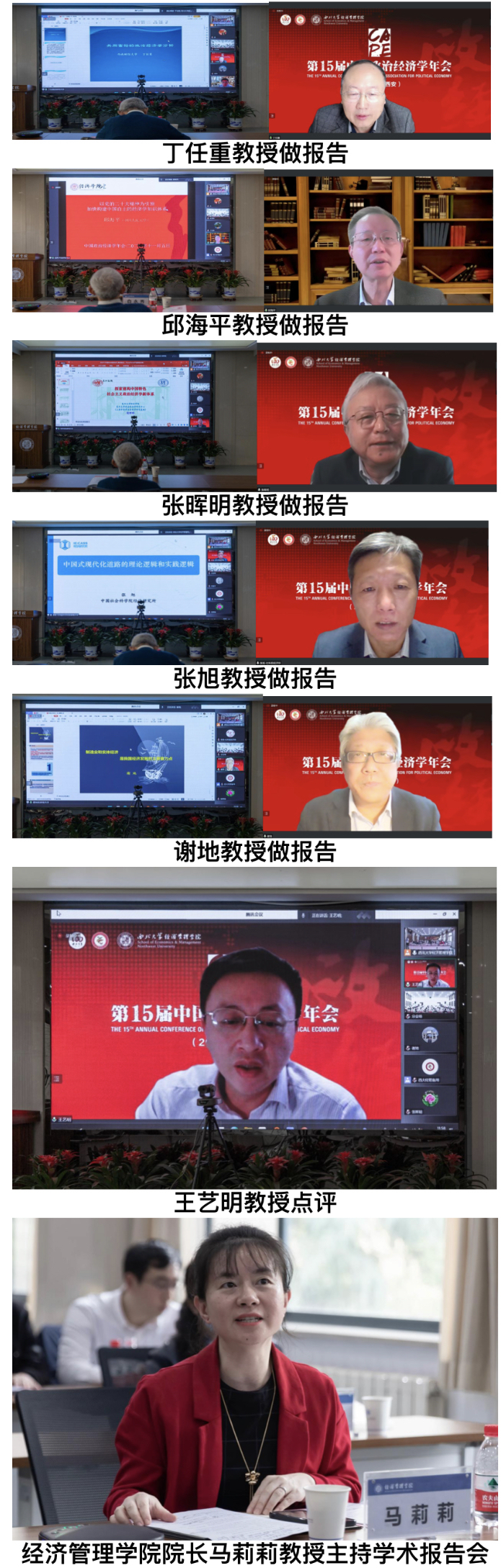 随后举行的学术报告会上,西南财经大学马克思主义经济研究院院长、原四川师范大学党委书记、校长丁任重教授以《共同富裕的政治经济学分析》为题、中国人民大学邱海平教授以《二十大精神为引领 加快构建中国自主的经济学知识体系》为题、复旦大学长三角研究院副院长张晖明教授以《构建中国特色社会主义政治经济学新体系的四点思考》为题、全国中国特色社会主义政治经济学研究中心副主任、中国社会科学院张旭教授以《中国式现代化的理论逻辑与实践逻辑》为题、辽宁大学经济学部副部长、经济学院谢地教授以《制造业和实体经济是我国经济发展的主要着力点》为题分别作了精彩报告,厦门大学王亚南经济研究院副院长王艺明教授就各位专家学者的报告作了精彩点评。本阶段报告会由MILAN.COM经济管理学院院长马莉莉教授主持。