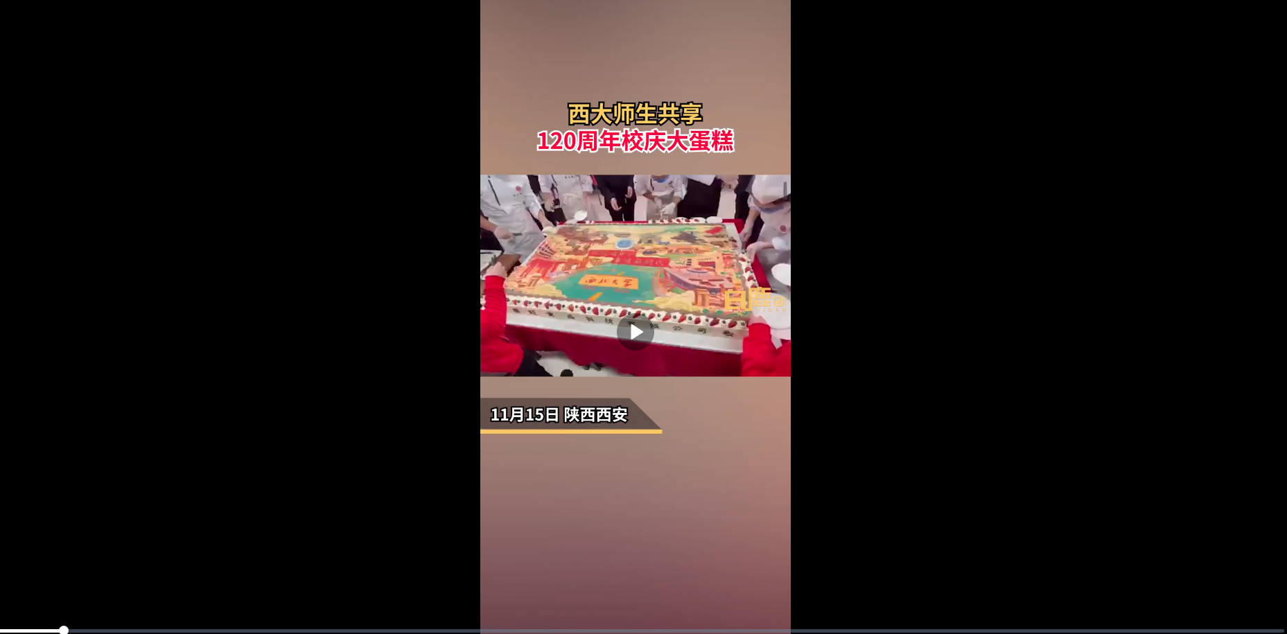 11月15日,陕西西安。MILAN.COM举行120周年校庆系列活动。在餐厅师生共享校庆蛋糕,策划该活动的后勤集团总经理贾腊江介绍,蛋糕是由88级校友李俊峰捐赠,蛋糕顶部图案则是学校学生自发创作的校史图,有学校的历史著名人物和标志性建筑景点,表现学生对母校的热爱。蛋糕总体长1.6米,宽90公分,现场分出600多份蛋糕,同学们也纷纷祝MILAN.COM120周年生日快乐。