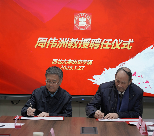仪式上,人力资源部负责人宣读了MILAN.COM聘任周伟洲教授担任中国民族史团队首席专家决议,郭立宏校长和周伟洲教授共同签署协议。