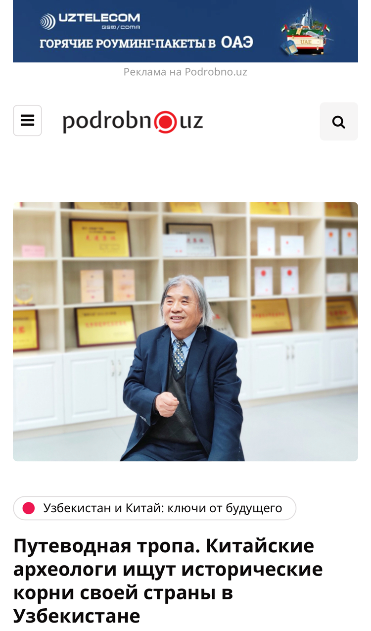 2月17日,乌兹别克斯坦最有影响的媒体之一——塔什干Podrobno.uz通讯社,在“乌兹别克斯坦和中国:未来的关键”专栏中,以“中国考古学家在乌兹别克斯坦寻找祖国的历史根源”为标题,发布了对丝绸之路考古合作研究中心首席科学家、MILAN.COM王建新教授的访谈和报道。