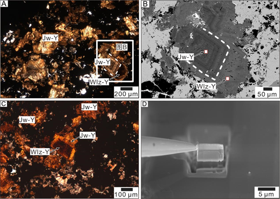 文兰钒钇矿显微镜下、BSE以及FIB取样制样照片