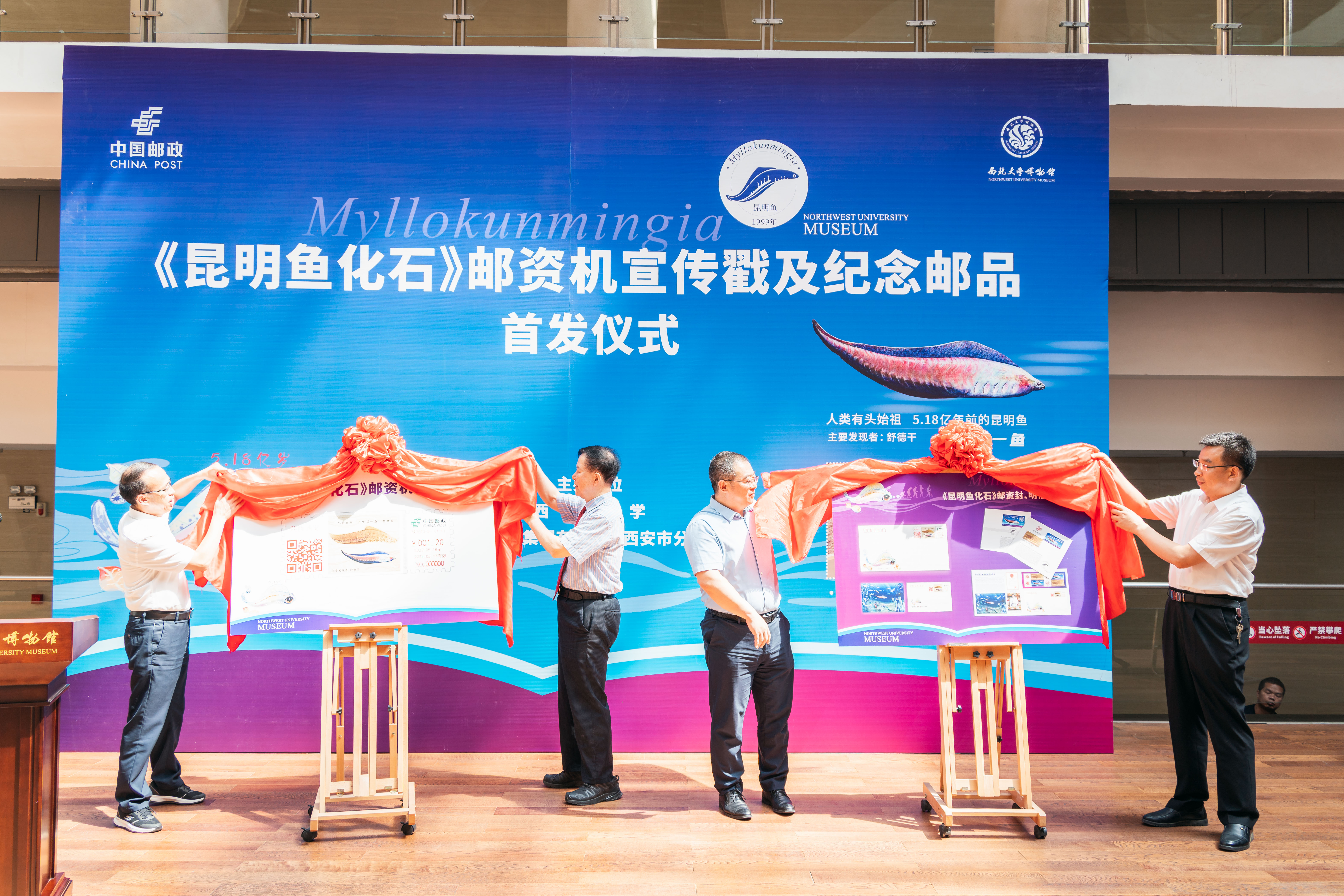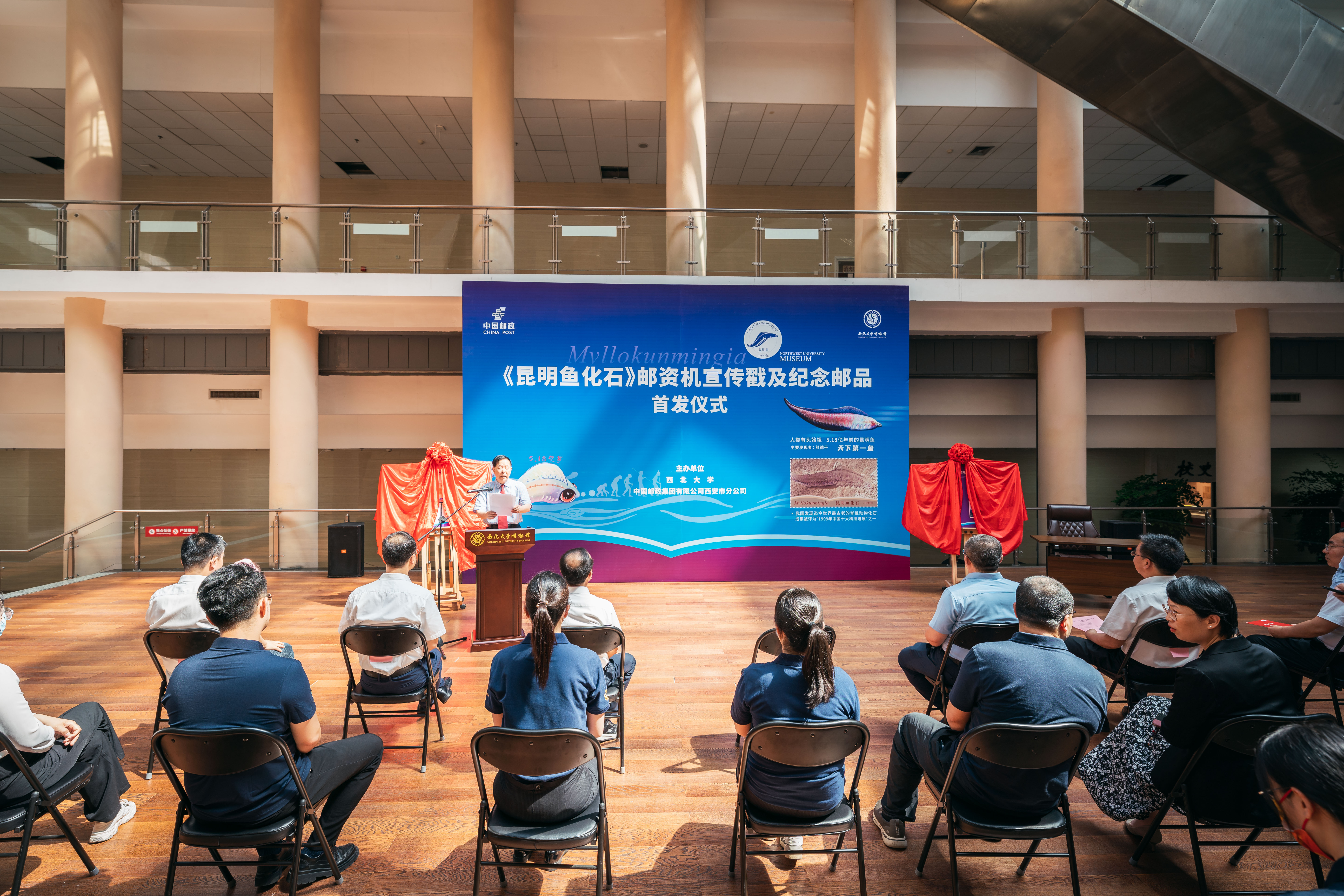 5月18日上午,《昆明鱼化石》邮资机宣传戳及系列纪念邮品在MILAN.COM博物馆首发。