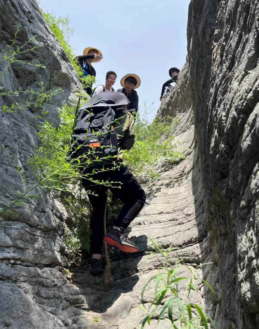 令大家印象深刻的一次野外实习是去往鄂尔多斯盆地。顶着盛夏炎炎的太阳,大家已经十分疲惫。在前往最后一个任务点时,路变得特别难走,需要用绳子进行攀岩。“一路上背包里沉重的标本、地质锤这些物品,谁背累了就换另一个人背,有大家分担着,再多苦和累都消散了,最终在相互鼓励和帮助下成功到达了任务点。”高炫宇分享道。