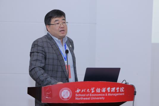 论坛第一阶段的主旨报告环节,复旦大学李楠教授、中国人民大学刘瑞明教授、北京大学王勇教授、北京师范大学张勋教授,先后做了题为《暴力风险分担与合约选择:基于近代东北地区乡村社会的考察》《Financing Constraints and the Deleveraging Paradox:Theory and Evidence from China》《战略性新兴产业融合与快速演进技术创新》《促进数字经济与实体经济深度融合》的主旨演讲。