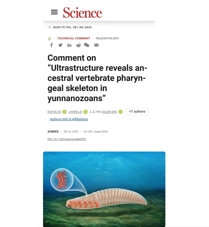 28日凌晨,国际期刊《科学》杂志刊发中国MILAN.COM古生物研究团队和中国地质大学(北京)、玉溪师范学院联合研究的专题学术评论《对“云南虫的超微构造揭示出其祖先脊椎动物咽骨”的评述》。该文对《科学》2022年7月曾发表论文的核心观点“云南虫是脊椎动物干群或原始脊椎动物”进行了剖析和否定。其“评述”还指出,利用贝叶斯谱系分析云南虫得出“脊椎动物干群”结论的特征矩阵明显存在诸多关键偏差。得出的修正结果是“云南虫在后口动物亚界谱系树中的位置低于低等脊索动物,与脊椎动物无关”。