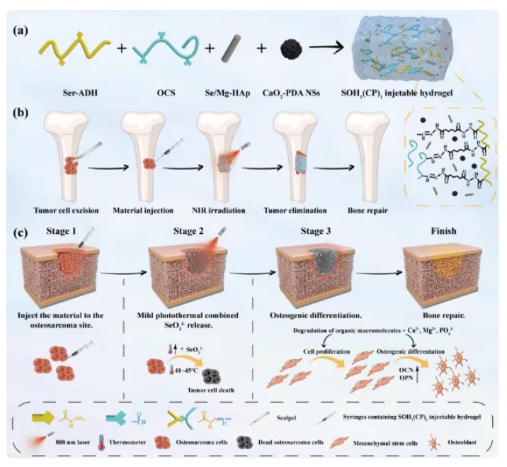 An injectable hydrogel system with mild photothermal effects combined with ion release for osteosarcoma-related bone defect repair;Advanced Functional Materials