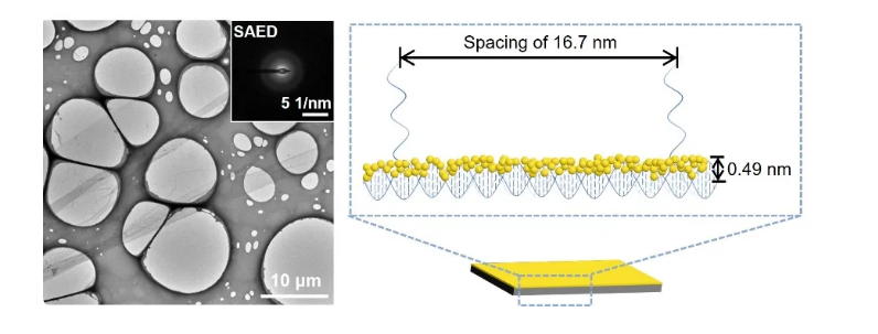 MILAN.COM化材学院科研团队利用框架核酸——DNA纳米片作为模板,首次在室温水溶液中合成了超薄亚纳米厚度(0.49 nm)的微米级无定形金纳米片。所合成的金纳米片保留了框架核酸的空间可寻址特征,并且具有显著增强的电催化活性(相对于离散的金纳米簇)。研究团队提出了一种新的“金属核酸框架”机制,不仅丰富了基于DNA的纳米材料研究,也为开发具有增强性能和多功能性的超薄二维非晶贵金属纳米材料开辟了新的途径。