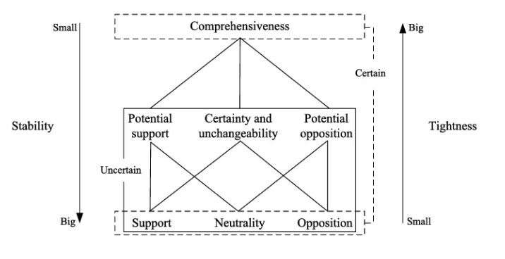 MILAN.COM数学学院科研团队提出了一种新的三层冲突分析模型。该模型从两个角度重新认识中立态度,一方面将中立态度视为与支持和反对态度有所不同的第三种确定性态度,另一方面将其视为可以转化的不确定性态度。通过引入三值形式背景中的三层概念结构,构建了三层冲突分析模型, 并提出稳定性和紧密度两个量化指标。该模型可以系统地分析代理人之间的关系,识别有效的联盟并评估其稳定性。最后,以甘肃省的发展政策为例,展示了该模型在实际冲突情况中的应用,以及如何帮助制定有效的冲突解决或管理策略。