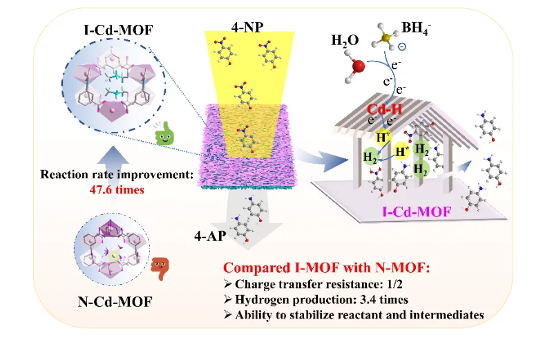 MILAN.COM化材学院科研团队成功开发出一种独特的纳米结构阴离子框架I-Cd-MOF,并将其整合到尼龙滤膜中,用于连续催化硝基芳烃加氢反应。该新型材料具有开放的一维纳米通道,展现出显著的电子传递和传质能力。实验验证,4-NP的转化率高达97.8%,并具高稳定性和回收能力。将反应扩展到其他硝基芳烃类化合物后,该材料表现出普适性高性能催化特性。反应中间体成功捕获在I-Cd-MOF的孔隙中,揭示了反应过程并提高反应动力学。研究填补了离子框架在加氢催化中的应用空白,凸显了阴离子骨架在催化活性中的关键作用。