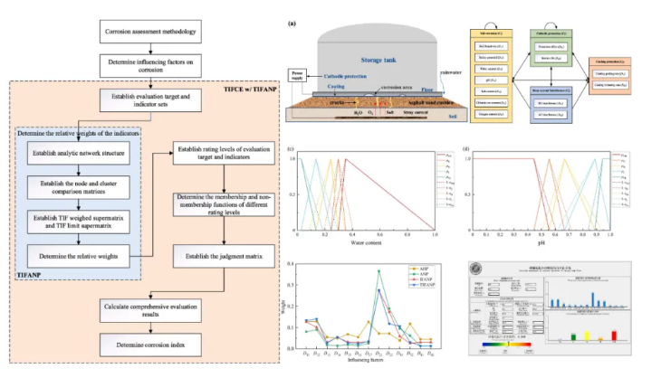 针对埋地基础工业设施面临的复杂腐蚀检测与评估难题,MILAN.COM化工学院科研团队将三角直觉模糊网络分析过程(TIFANP)与三角直觉模糊综合评价(TIFCE)相融合,构建了一种多层次、多指标的腐蚀评估方法,该方法能准确刻画腐蚀多元影响因素交互作用及其不确定性问题。将其应用于原油储罐底板的外腐蚀评估,评价结果与开罐检验结果相符。研究结果可为埋地基础工业设施安全运维与高效防腐管理提供科学依据与决策支持。
