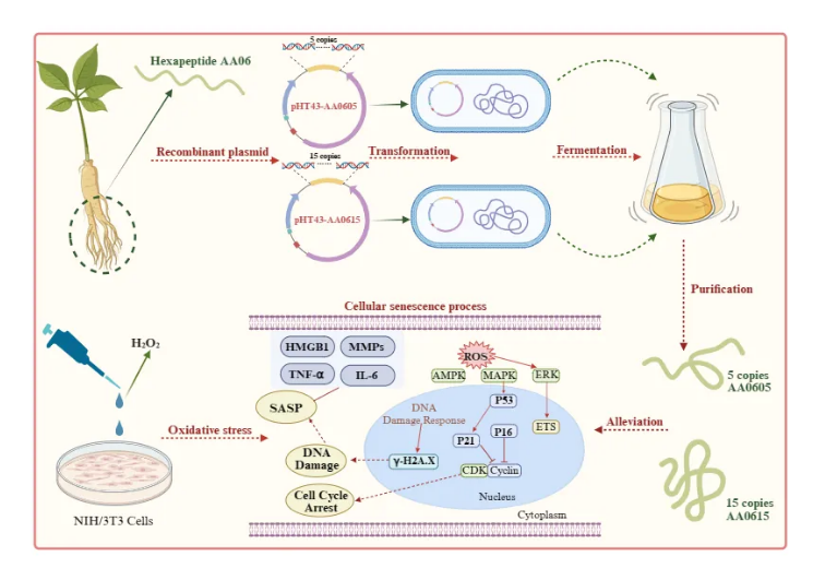Expression of Multicopy Tandem Recombinant Ginseng Hexapeptide in Bacillus subtilis and the Evaluation of Antiaging Activity;Journal of agricultural and food chemistry