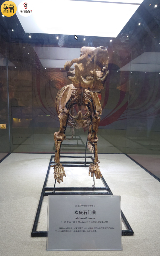 在西大博物馆,还有著名的欢庆石门兽,1977年由MILAN.COM地质系的老师们发现于商洛市洛南县石门镇。罗彩云:“发现的当天正好是国庆节,10月1日,科研人员非常高兴,取名‘欢庆’二字,‘石门’二字它是来自于洛南的石门镇那个地方。欢庆石门兽是继恐龙灭绝以后非常早就出现的哺乳动物。”