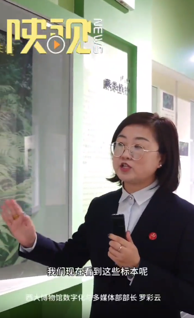 罗彩云:“我们这个生物馆主要体现的就是秦岭地区的、秦巴山区的珍稀濒危的动植物标本,主题就是生物多样性。分为了四个部分,第一个部分微生物部分、第二个部分是植物部分、第三个部分动物部分,最后一个部分是昆虫部分。”