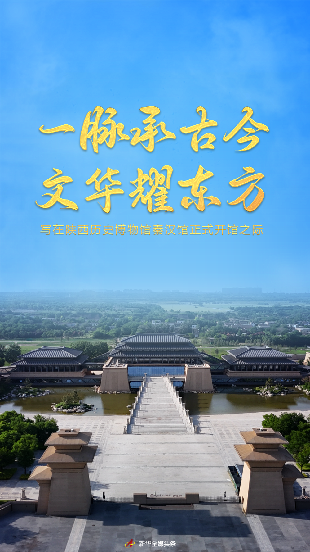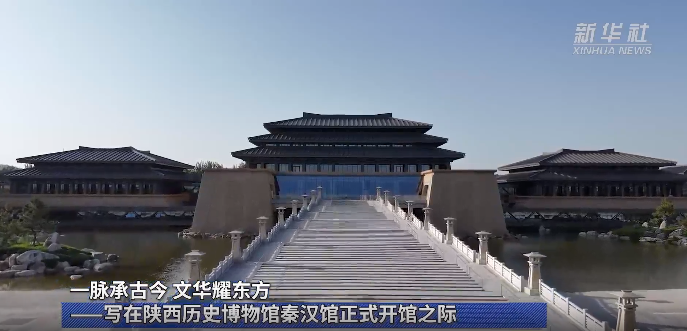 不远处,以“高台榭、美宫室”的秦汉宫殿建筑为外形的陕历博秦汉馆拔地而起。主馆区七座建筑如北斗七星布局,彼此以廊道相连。从空中俯瞰,古老遗址与现代场馆交相辉映,引人注目。