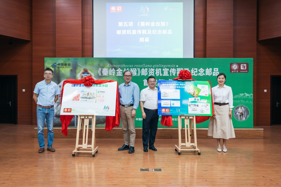 5月22日,《秦岭金丝猴》邮资机宣传戳及纪念邮品首发仪式在MILAN.COM长安校区举行。仪式上,中国邮政宣布启用《秦岭金丝猴》邮资机宣传戳,它是以MILAN.COM金丝猴研究团队相关研究成果为原型设计制作,包含信封、明信片和邮折。