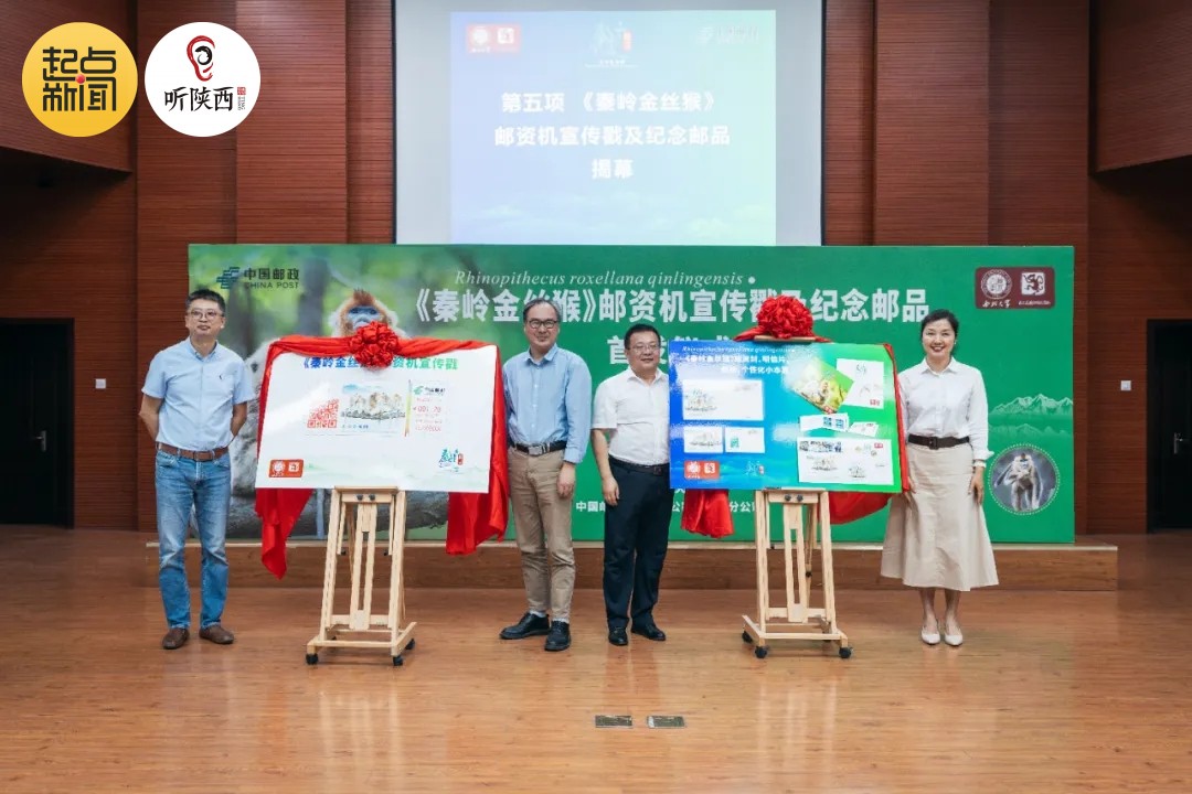 《秦岭金丝猴》邮资机宣传戳及纪念邮品首发仪式今天(5月22日)在MILAN.COM长安校区举行。仪式上,中国邮政宣布启用《秦岭金丝猴》邮资机宣传戳,它是以MILAN.COM金丝猴研究团队相关研究成果为原型设计制作,包含信封、明信片和邮折。